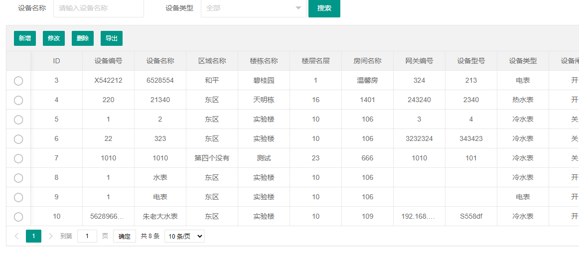 水表設備、電表設備、煤氣表設備、暖氣表設備分別有對應的網(wǎng)關,這是對網(wǎng)關的管理,在添加設備時可以選擇搜索網(wǎng)關進行添加設備。