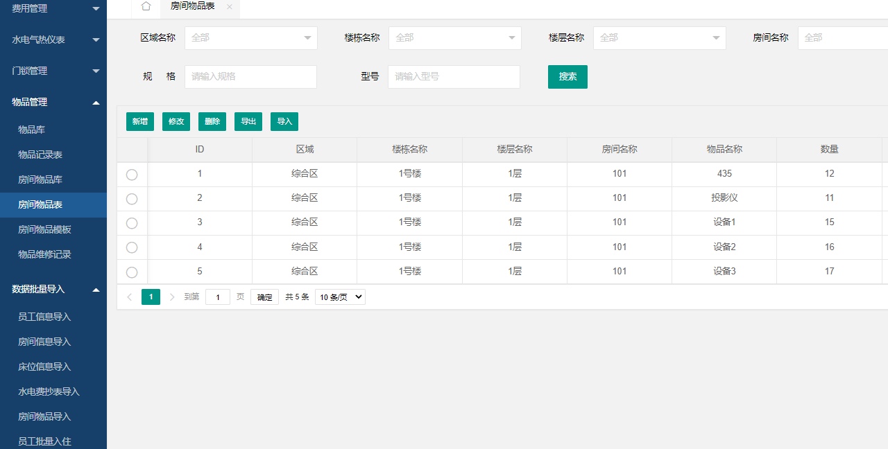 您可以通過錄入信息、導(dǎo)入信息、批量生成信息等方式直接實現(xiàn)宿舍信息初始化,并且在批量生成宿舍信息時,也可同時生成宿舍內(nèi)物品信息哦。多種錄入信息的方式,讓你不用再為大量的信息而煩惱!